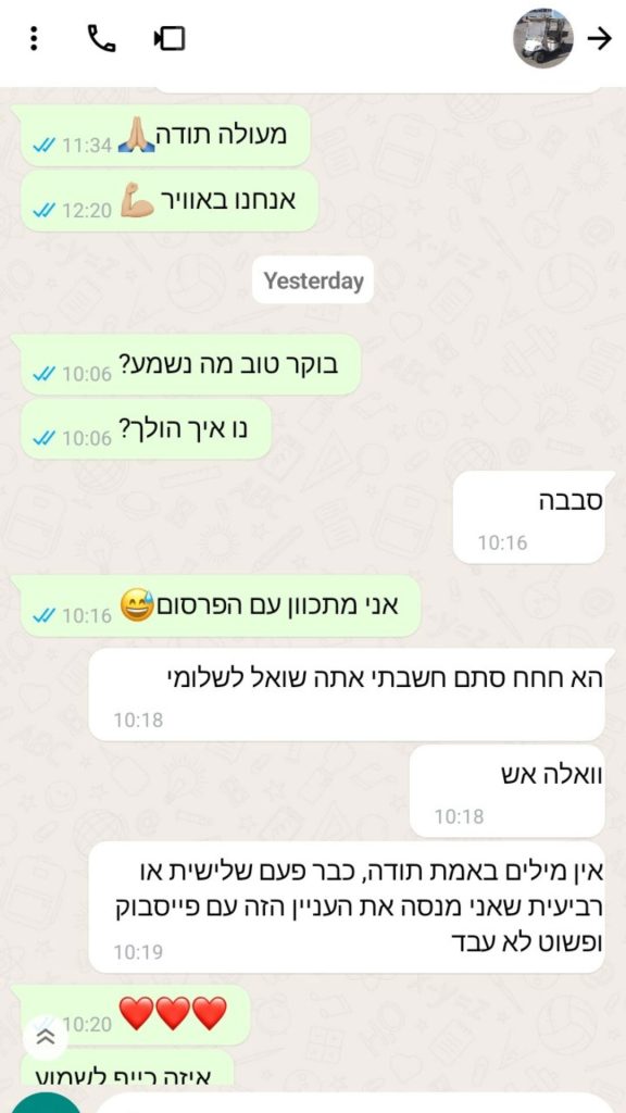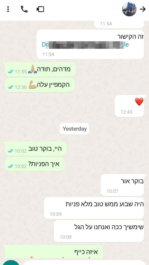 עמית אשכנזי2026-02-17Trustindex מוודא שהמקור המקורי של הסקירה הוא Google. ברק אחד התותחים והמקצוענים. מה גם שהוא פשוט מקסים וכיף לעבוד איתו וזה שווה הכל. עזר לי מאוד ועד היום כל פעם שצריכה עוזר לי 🙏 צופית סויד2026-02-11Trustindex מוודא שהמקור המקורי של הסקירה הוא Google. ברק פשוט מקצוען אמיתי! הטיס לי את העסק והביא לי מלא לידים בגרושים full life2026-02-10Trustindex מוודא שהמקור המקורי של הסקירה הוא Google. מומלץ בחום אנשים מקצוענים LIZA B2026-01-07Trustindex מוודא שהמקור המקורי של הסקירה הוא Google. הדבר הטוב ביותר שעשיתי לעסק שלי! ממליצהמאומת על ידי Trustindexתעודת האימות של Trustindex היא סמל האמון האוניברסלי. רק החברות הטובות ביותר יכולות לקבל את התעודה המאומתת עם דירוג מעל 4.5, בהתבסס על ביקורות לקוחות במהלך 12 החודשים האחרונים. קרא עוד